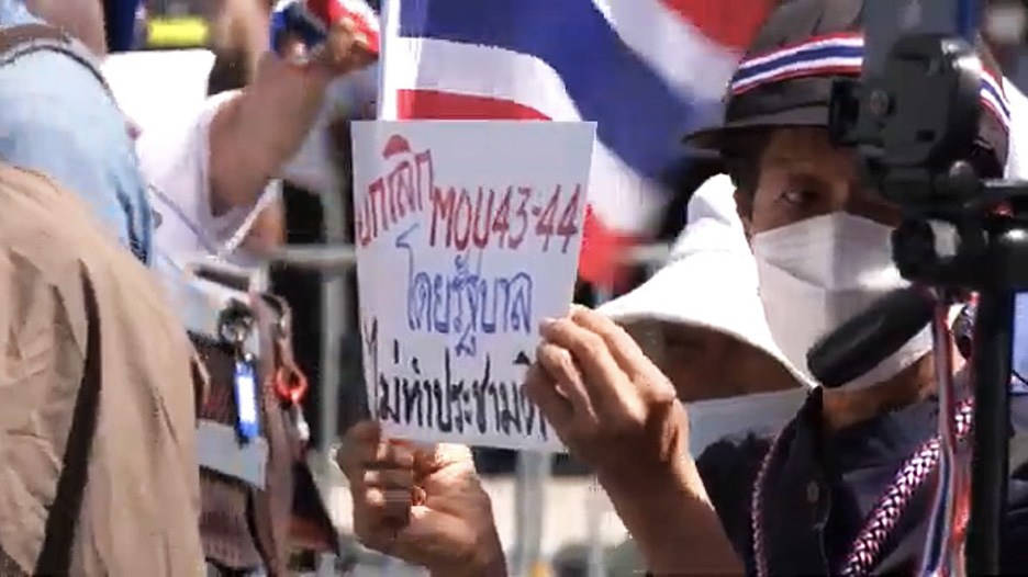 Консервативные протестные группы, связанные с бывшим движением Желтых Рубашек, собрались у Государственного дома во вторник, чтобы представить петицию премьер-министру Анутина Чарнвиракулу